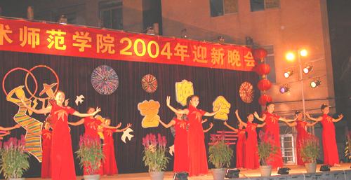 8时整,晚会在院艺术团表演的现代舞《青春如火》中拉开了帷幕。悦耳的独唱、合唱,动感欢快的舞蹈赢得师生们掌声不断。除了传统的歌舞表演外,这次晚会还新增了许多不同形式、不同风格的节目。其中,中文系新生以配乐诗歌舞的形式回顾了我院的46年的光辉历程,展望了广师的美好前景,让广师人倍感骄傲与自豪。而身穿一身清凉夏装的学院幼儿园小朋友们一出场便赢来了阵阵欢呼;他们踏着动感的节拍,模仿成年人一样走T台,丰富的表情,稚嫩的动作掀起了晚会的小高潮。随着一声警车的呼鸣,表演《特警雄风》的武警四支队官兵从车上翻身而下,直奔舞台,威武的气势,优美的舞步,吸引着每个人的眼球。演出结束后,领导们与全体演员亲切合影留念。