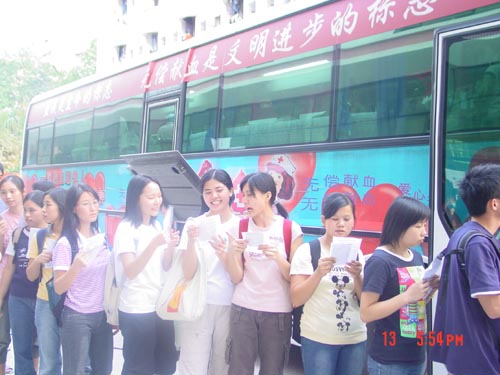 9月13日,由院团委组织的无偿献血活动在综合馆前举行,来自各系的同学参加了此次无偿献血,为自已的青春画上一道亮丽的风景线。