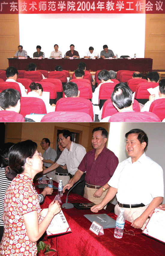 郭院长在会上指出,我们当前的任务是:要高举邓小平理论伟大旗帜,以“三个代表”重要思想为指导,以“巩固成果、深化改革、提高质量、持续发展”为方针,按省委省政府“科教兴粤”的战略和建设教育强省的目标,创新人才培养模式和教学工作机制、深化各项教学改革,把我院创新人才培养的“二次创业”推向一个新的阶段。他对当前我院教学工作的几点意见:一是要进一步完善和固化“3+0.5+0.5”人才培养新模式;二是进一步建设和推进工业实训中心服务教学与科研开发协调发展;三是按标准按要求建设好新办专业及其方向,深化大学英语教学改革试点试验;四是要全体动员,做好迎接2006年本科教学工作水平合格评估的各项准备工作。