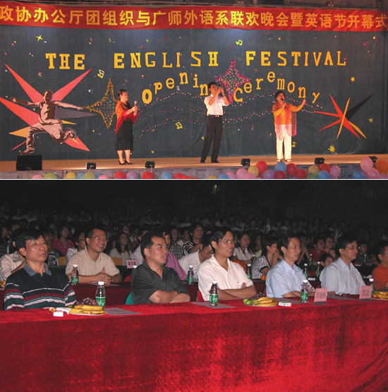 晚会的内容精彩丰富,外语系同学和省政协各个部门的同志以歌舞、武术表演、游戏等形式同欢同乐,舞台上下成为一片欢乐的海洋。外语系的同学们以歌会友,向客人展现了我院学生能歌善舞、多才多艺的风采。