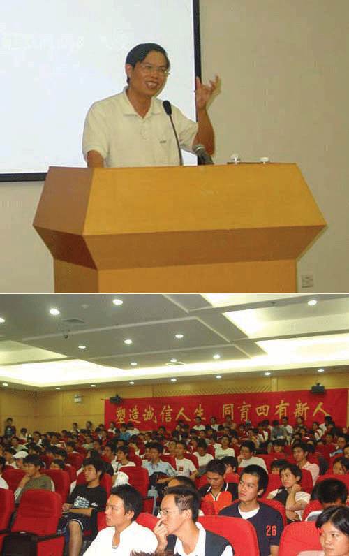 罗副书记与200多名04级的新同学围绕“什么是大学,大学学什么,大学怎样学”进行了深入而广泛的沟通、交流和讨论。师生上下互动,气氛热烈。