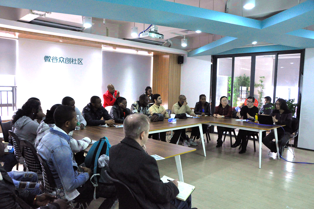 在微谷众创社区创始人、董事方晓达的带领下,留学生们参观了微谷众创社区,对我国“全民创业,万众创新”形势有了较深入的了解。留学生们与方晓达进行了2个多小时的热烈交流和讨论,他们尤其关注众创社区的创新机制、创新创意的孵化和培养、成功案例的成长、中外合作创新模式的建设、众创社区的融资方式等内容,也热切希望能够参加该社区举办的国际青年创新创业大赛、树计划TIP职场进化活动、创业论坛等活动。