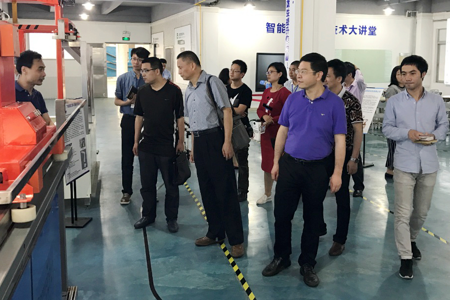 图为机电学院调研团队参观勒流智能制造技术应用工程中心。