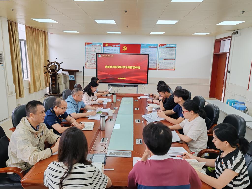为深入学习贯彻习近平总书记关于党全面加强党的纪律建设的重要论述,持续推进党纪学习教育走深走实。6月4日上午,自动化学院召开党委理论学习中心组第二期专题学习会暨党纪学习教育读书班,学院班子成员、支部书记等参加学习会。