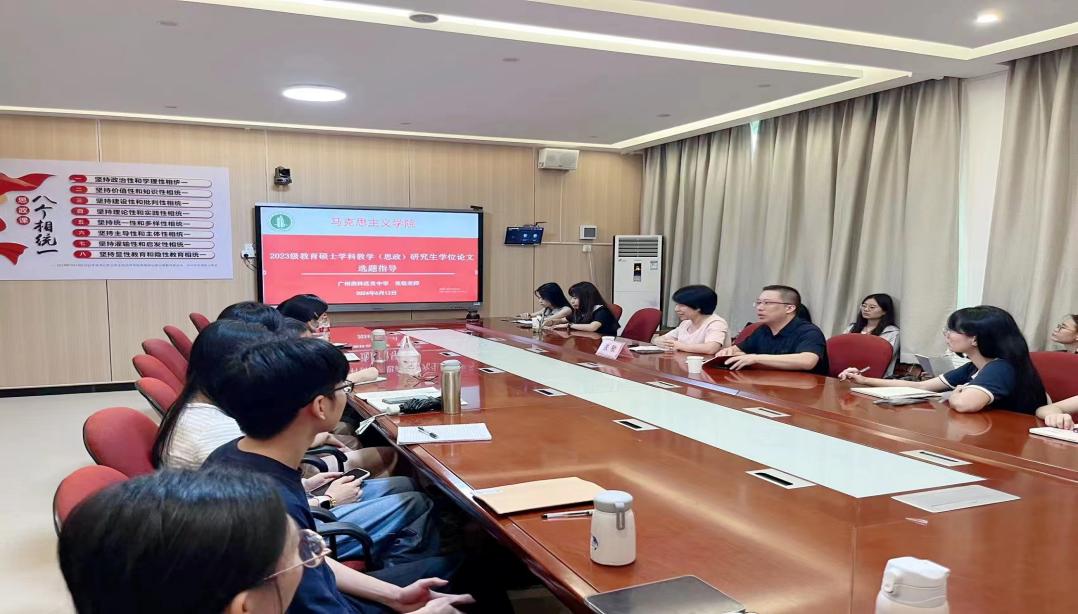 6月12日,马克思主义学院在一教1311会议室举行2023级教育硕士研究生学位论文选题指导专题讲座,特邀广州奥林匹克中学张敏副校长担任主讲嘉宾,2023级学科教学(思政)和学科教学(历史)研究生等参加讲座。