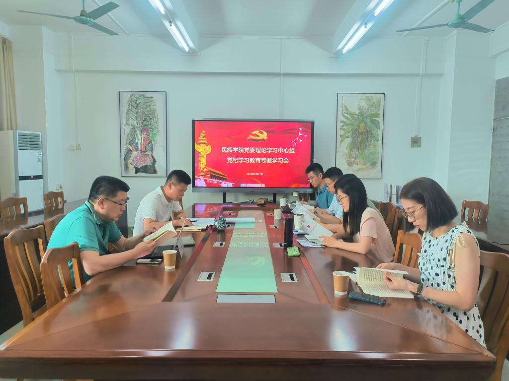 为深入开展党纪学习教育,进一步加强党的纪律建设,民族学院党委于6月13日下午在1411室召开了党委理论学习中心组学习会扩大会暨党纪学习教育读书班,深入学习贯彻习近平总书记关于全面加强党的纪律建设的重要论述。会议由学院党委书记黄文浩主持,学院党委委员出席并作了学习分享,教工党支部支委等教师代表列席参会。