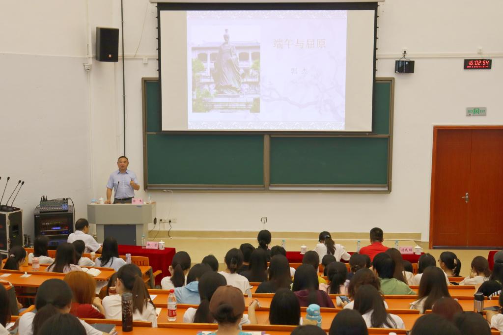 6月18日,达之讲座教授郭杰为河源校区师生们作了题为《端午和屈原》的学术讲座。河源校区200多名师生现场聆听讲座,讲座由图书馆馆长白崇主持。