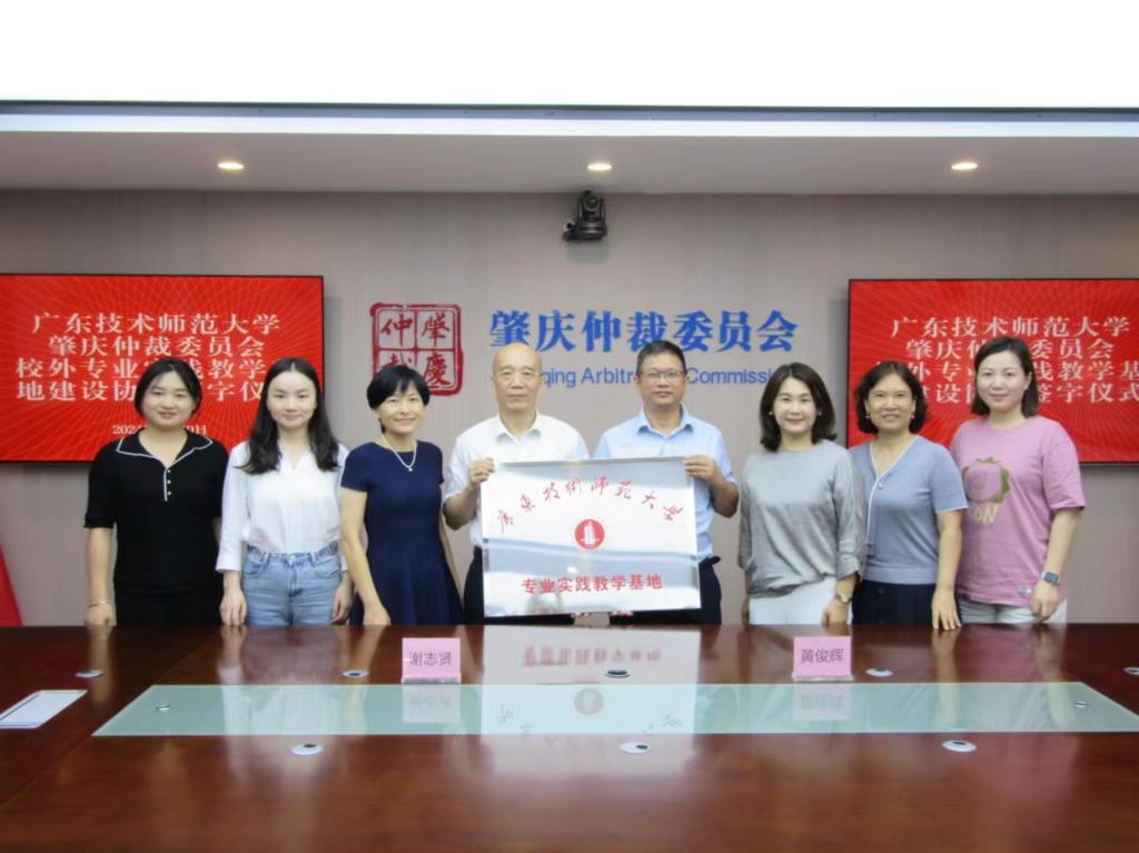 6月20日,法学与知识产权学院院长黄俊辉带队,副院长李小萍教师代表一行5人赴肇庆仲裁委员会开展专业实践教学基地挂牌及访企拓岗交流。