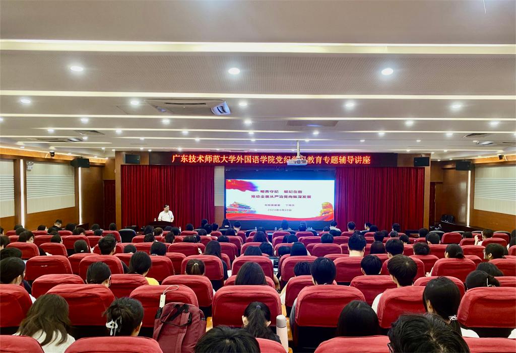 为进一步推进党纪学习教育走深走实,持续深化学校各基层党组织结对共建,强化师生党员的纪律意识,凝聚发展合力,6月20日下午,外国语学院党委联合机关党委人事处党支部在白云校区三教104报告厅举行党纪学习教育专题辅导讲座,邀请学校纪委副书记、纪检监察室主任丁纯杰同志专题授课。外国语学院领导班子、人事处党支部全体成员、外国语学院全体师生党员及入党积极分子等300余人参加会议。会议由外国语学院院长徐玲主持。