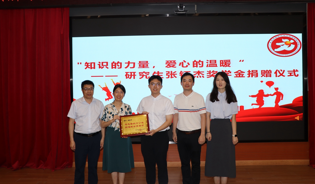 捐赠仪式上,张钰杰向学院捐赠“2023年研究生国家奖学金”贰万元整,学院党委书记李双贵代表学院接受捐赠,并向张钰杰颁发了荣誉牌匾。此次所捐赠的款项,将用于学生的学科竞赛和讲座交流,为在校学子提供更好的学习和工作条件。