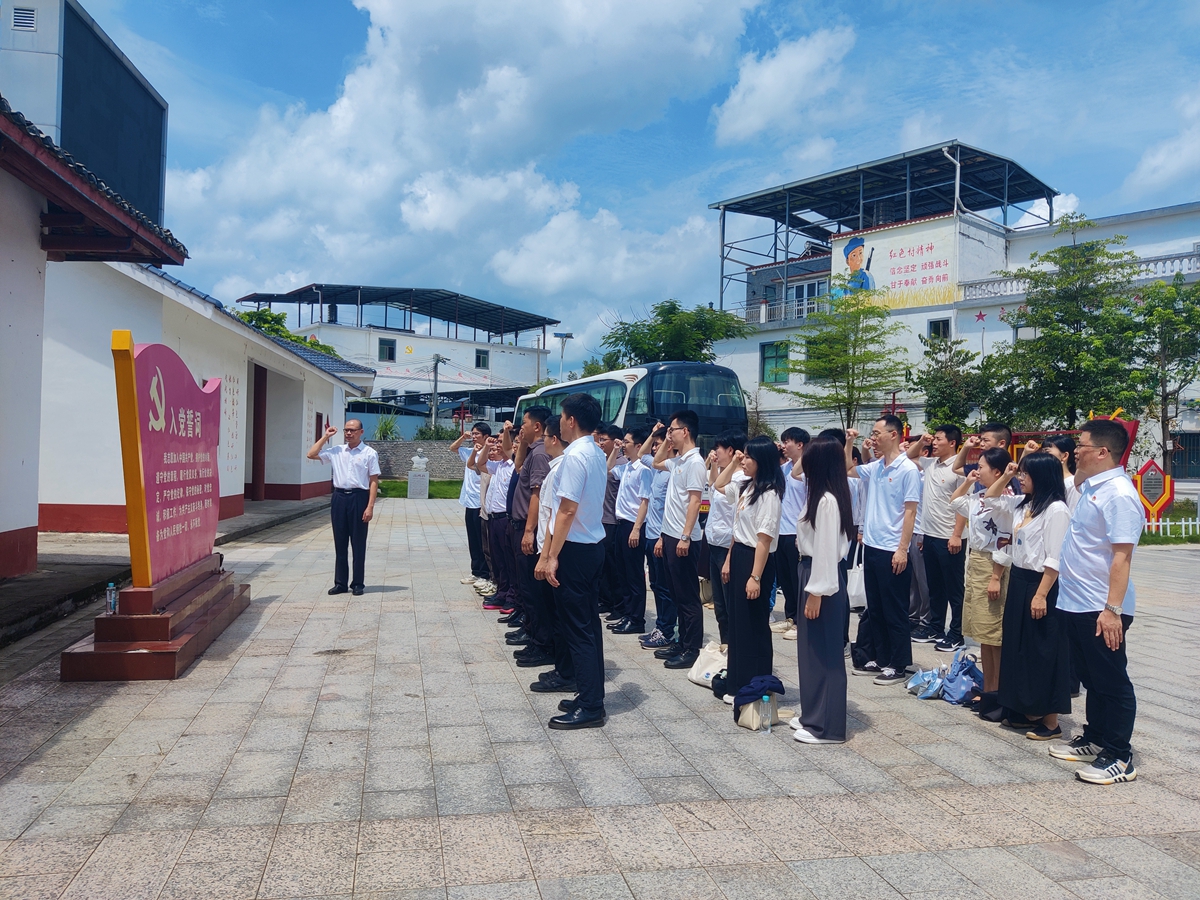 参观完吴氏宗祠后,河源校区党委、数据科学与工程学院党委全体党员前往拓陂村华南小学革命旧址参观学习,在讲解员动情的介绍下,大家深刻了解了抗日战争与解放战争时期华南小学作为革命的堡垒,为党和人民事业做出的突出贡献。参观结束后,全体党员教师在华南小学革命旧址前整齐队列,面对鲜红的党旗,由河源校区党委书记罗君辉领誓,重温入党誓词。