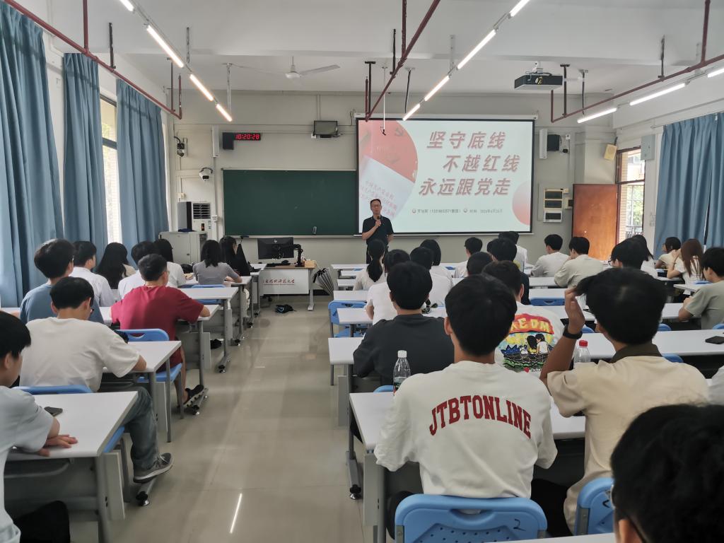 为深入学习贯彻习近平总书记关于党纪学习教育的重要讲话和重要指示精神,深化毕业生党员党纪学习教育,引导毕业生党员坚定理想信念、锤炼党性修养,6月26日上午,电子与信息学院在白云校区二教202开展党纪学习教育专题党课暨2024届毕业生党员教育大会。电子与信息学院党委书记罗旭辉、副书记梁茵、专职组织员陈旻和全体2024届毕业生党员参加此次活动。