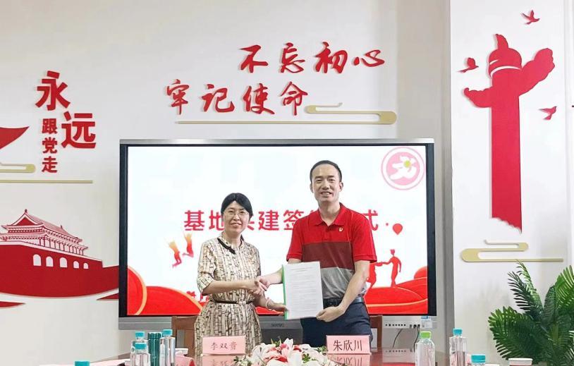 李双贵详细介绍了学院在本科及硕士研究生教育、人才培养方面的丰硕成果,特别是汉语言文学、新闻学等专业的深厚学术底蕴与显著教学成就。她强调,学院将充分利用自身学科优势、师资力量及丰富的教学资源,与黄埔军校纪念中学携手,共同开展一系列高质量的教学与科研合作活动,实现双方教育资源的最大化利用。朱欣川分享了该校的发展现状与未来规划,同时表达了与学院深度合作的美好愿景。他期待通过双方的紧密合作,实现资源共享、优势互补,共同推动学校各项事业的蓬勃发展,为社会培养更多具有社会责任感和创新精神的优秀人才。随后,双方正式签订了基地共建协议。