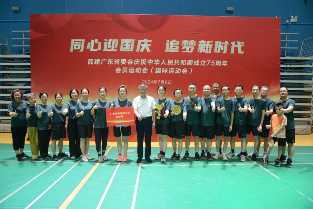 7月6日,民建广东省委会“同心迎国庆,追梦新时代”庆祝中华人民共和国成立75周年会员运动会(趣味运动会)在广州市海珠体育中心举办,民建学校基层委20余人参加运动会。经过激烈角逐,民建学校基层委荣获团体亚军及“步调一致争一流”项目单项第一名的好成绩。